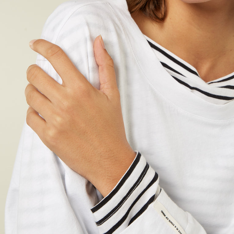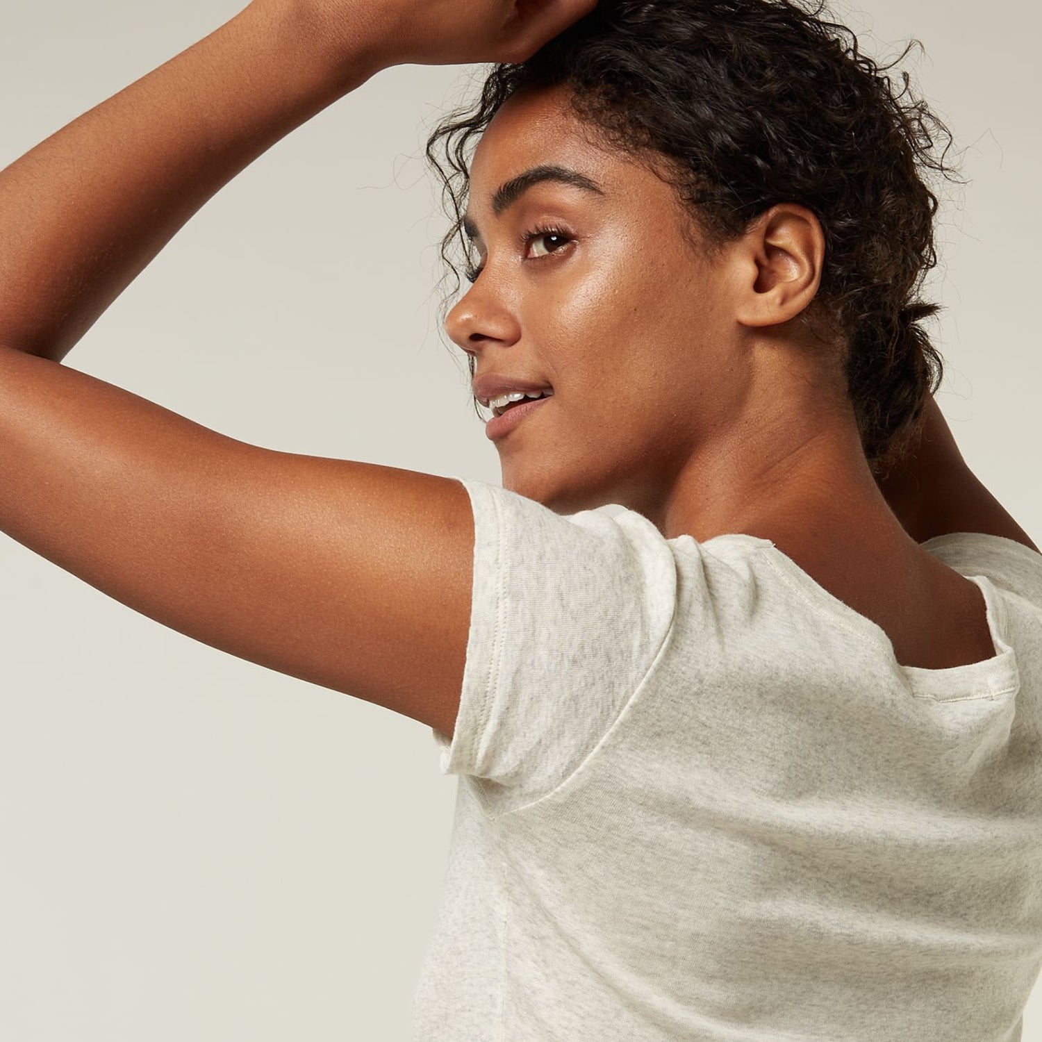Cotton withstands a lot and can be washed, dried, and heated without too much worry. Keep light garments bright by pre-treating stains in areas such as under arms, necklines, and cuffs. But avoid bleach, it’s tough on the fabric and bad for the environment. Instead, try lemon juice (for stains) or vinegar (gets rid of smell).