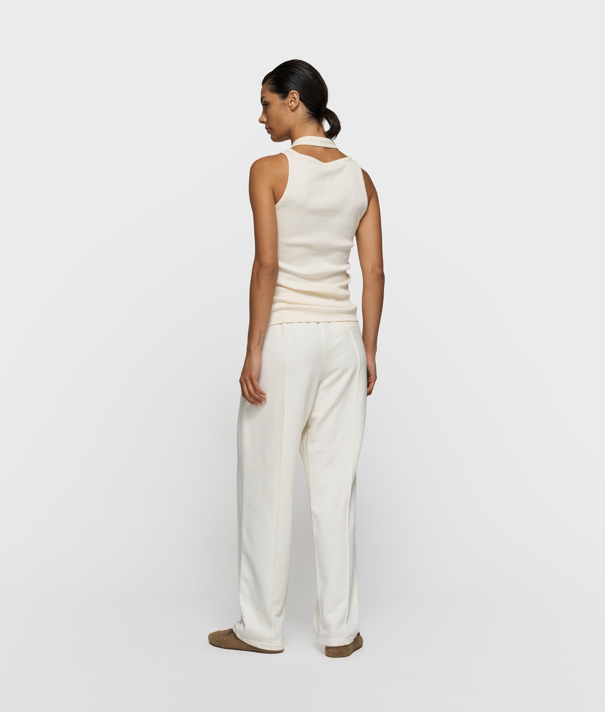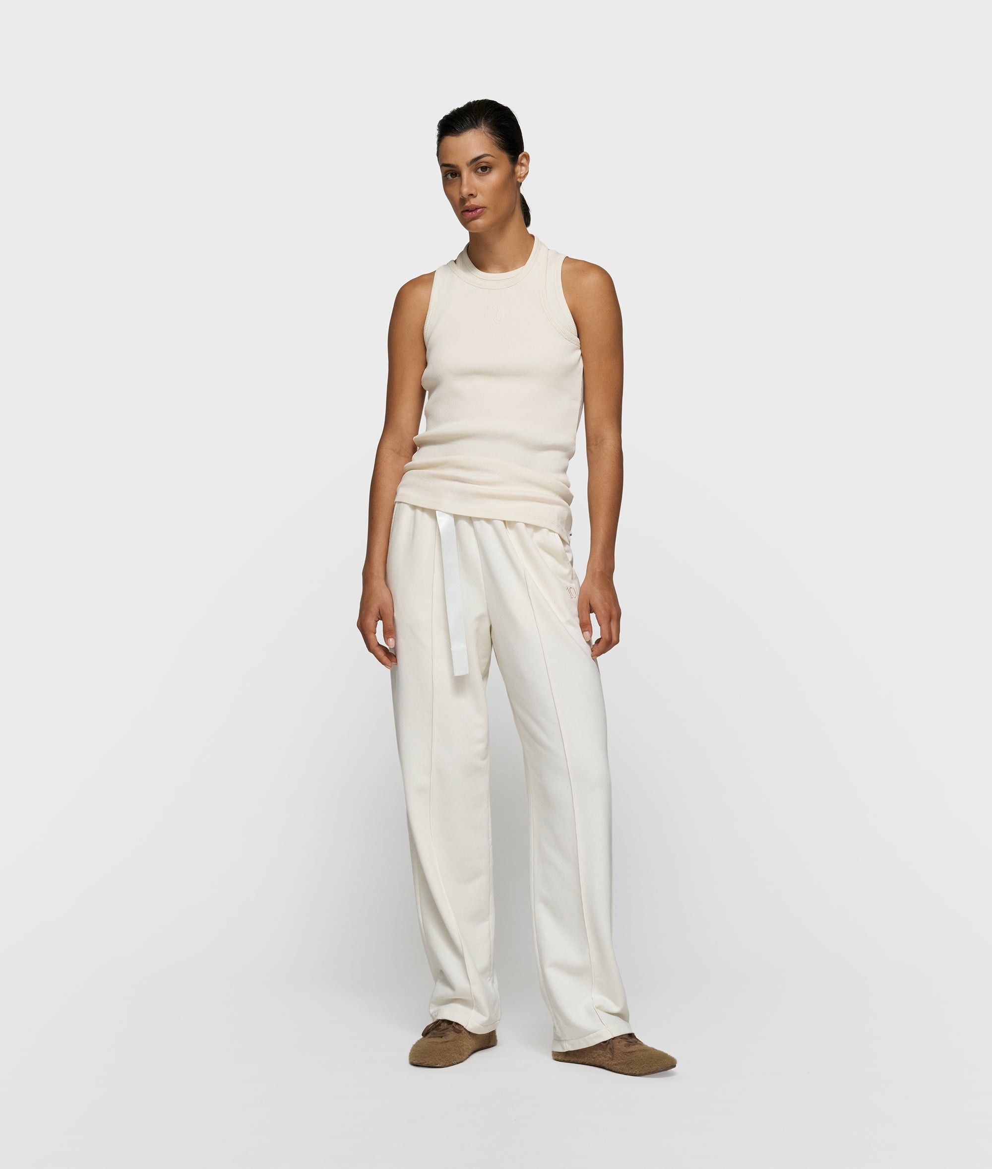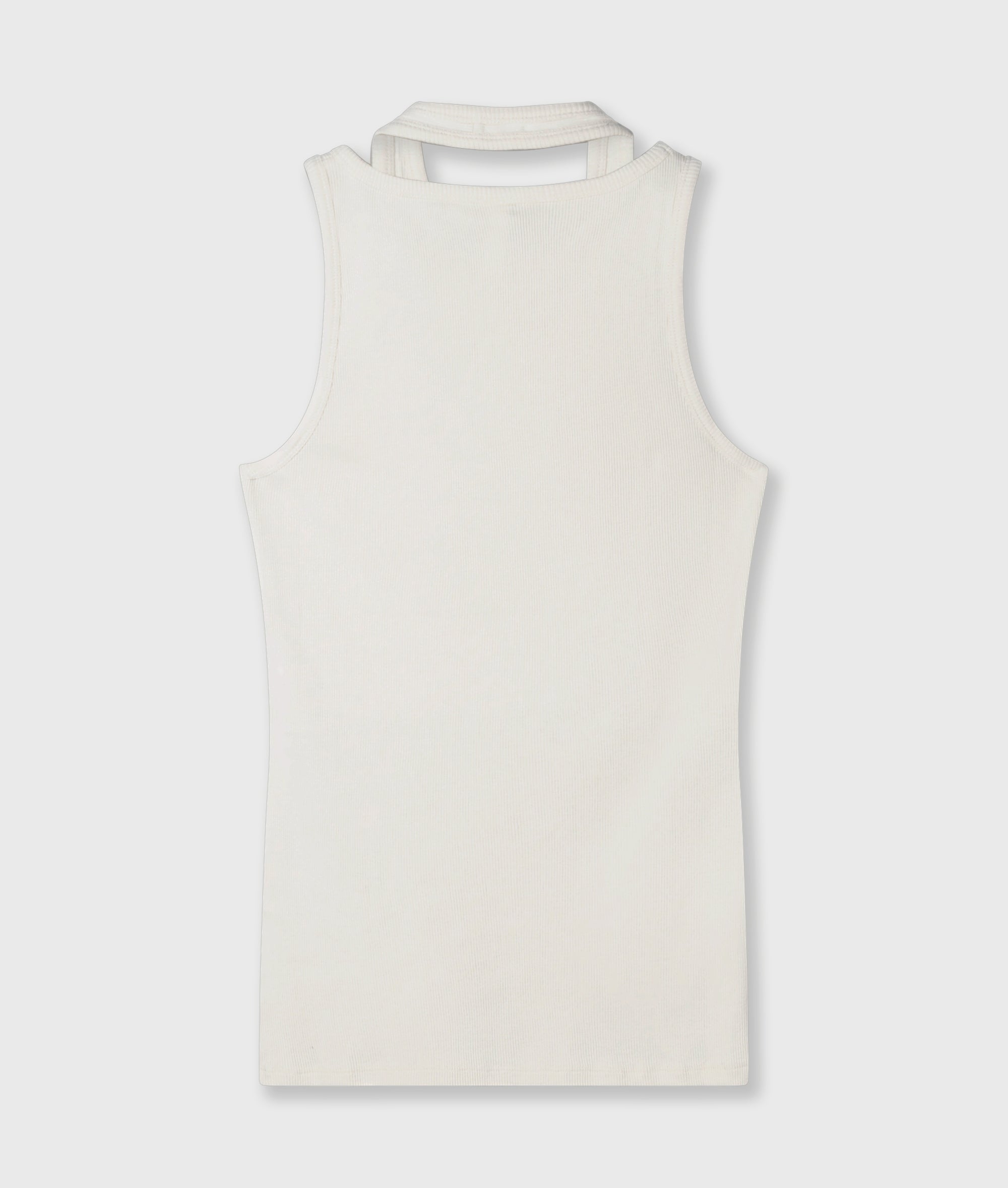 Slim fit asymmetric top, made from GOTS-certified organic cotton rib jersey. Features a double ribbed neckline, a 2-stripes label at the hem, and a 'curly 10' on the chest.