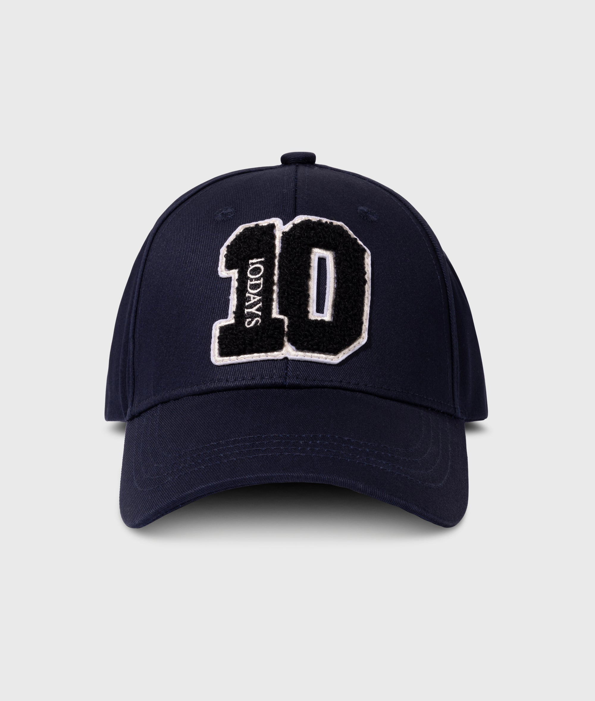 Cotton cap with a baseball 10 patch on the front. Features a mini stripes embroidery on the back left and an adjustable strap at the back.