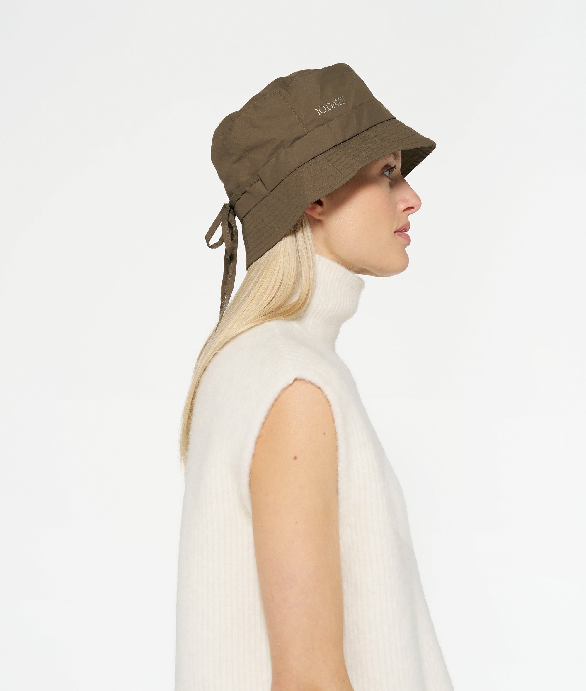 Bucket hat with a 10DAYS print, made of polyester. The bucket hat has drawstrings and reinforced stitching along the flap. One size.