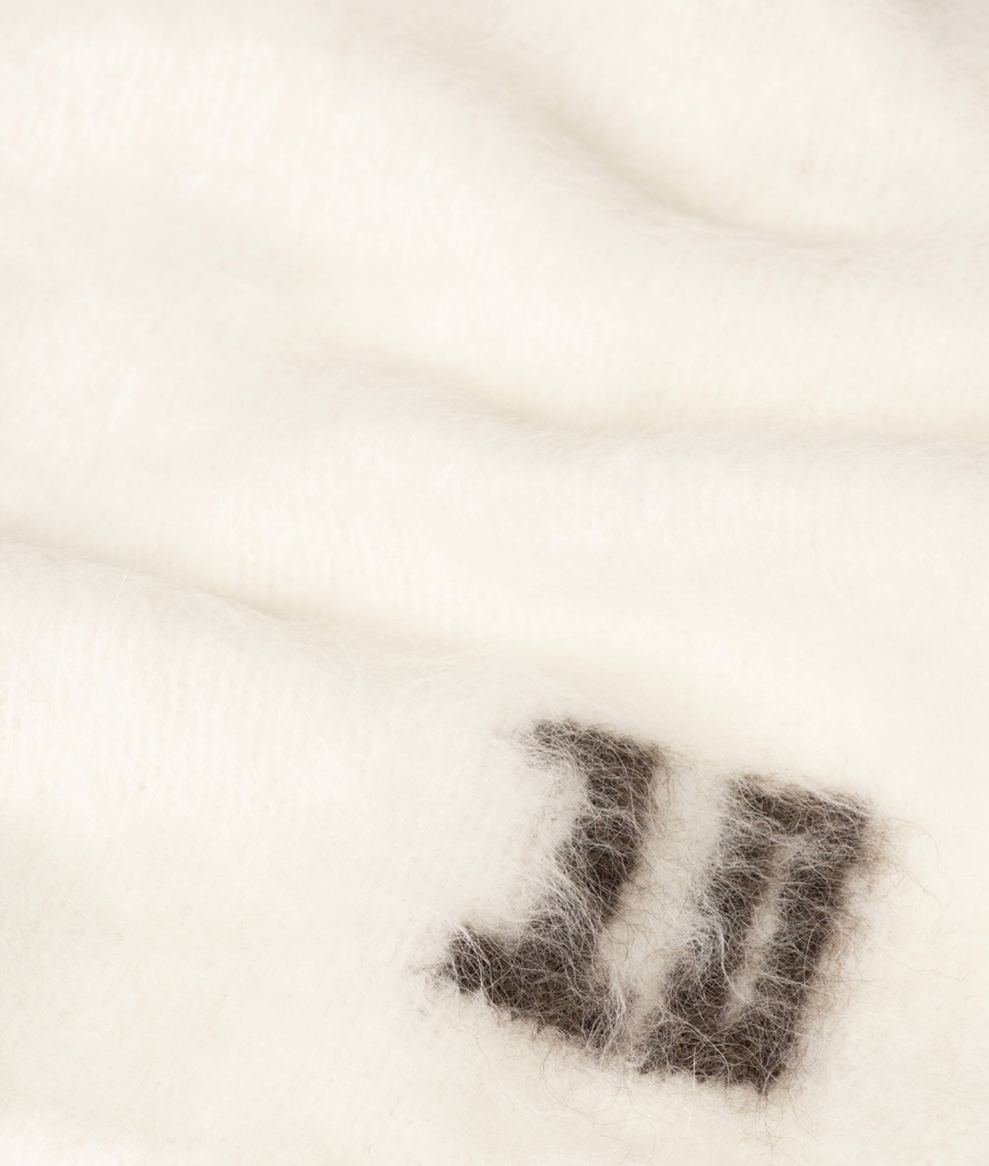 Knitted bandana scarf with an integrated 'baseball 10' logo, made from a soft alpaca acrylic blend. Size: 40 x 85 cm.