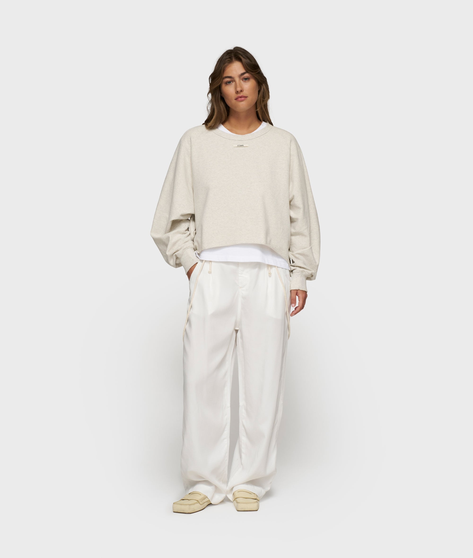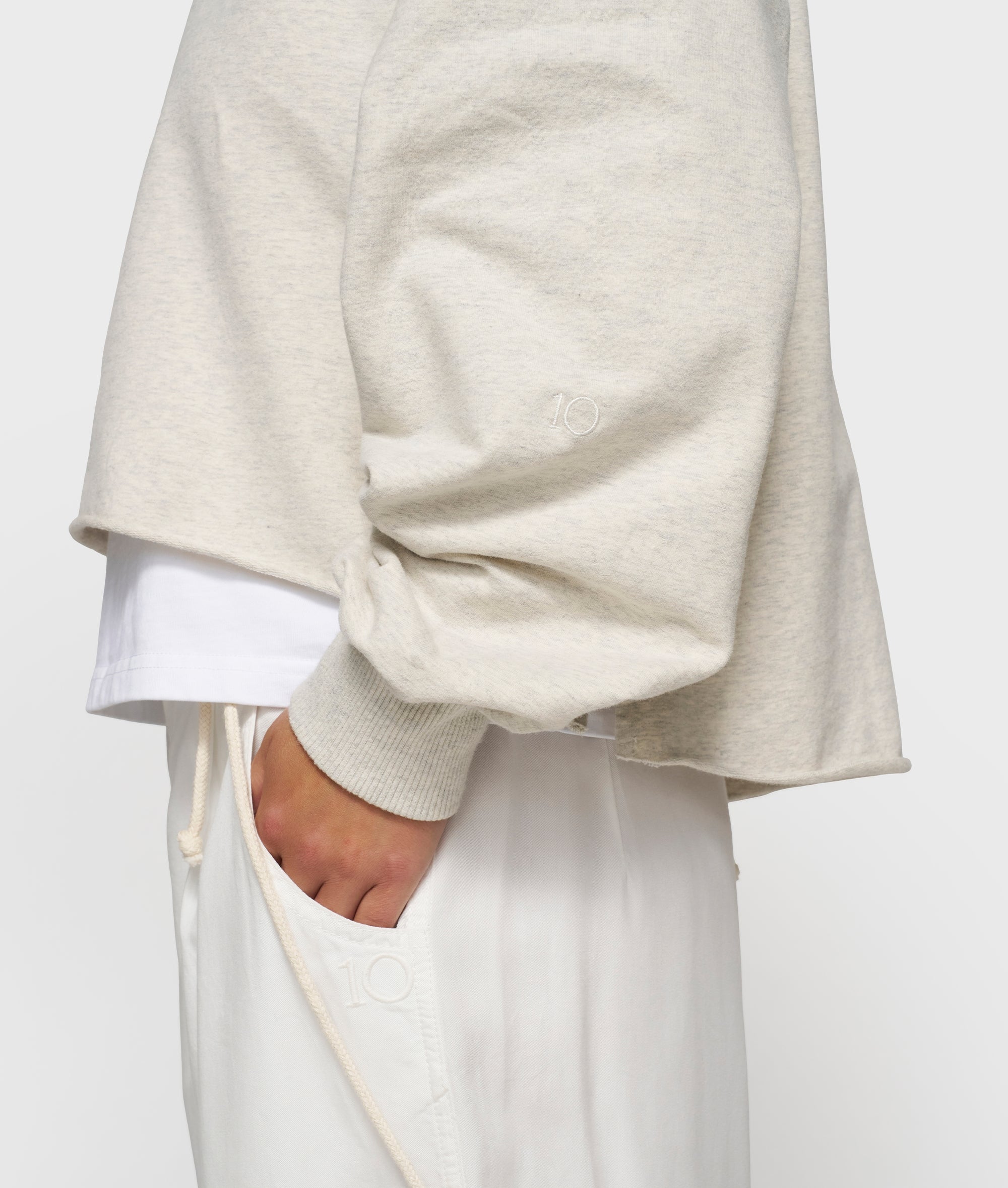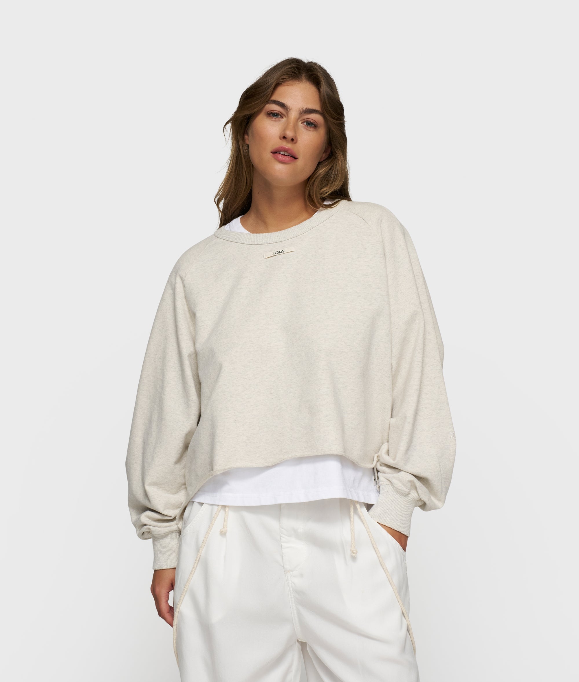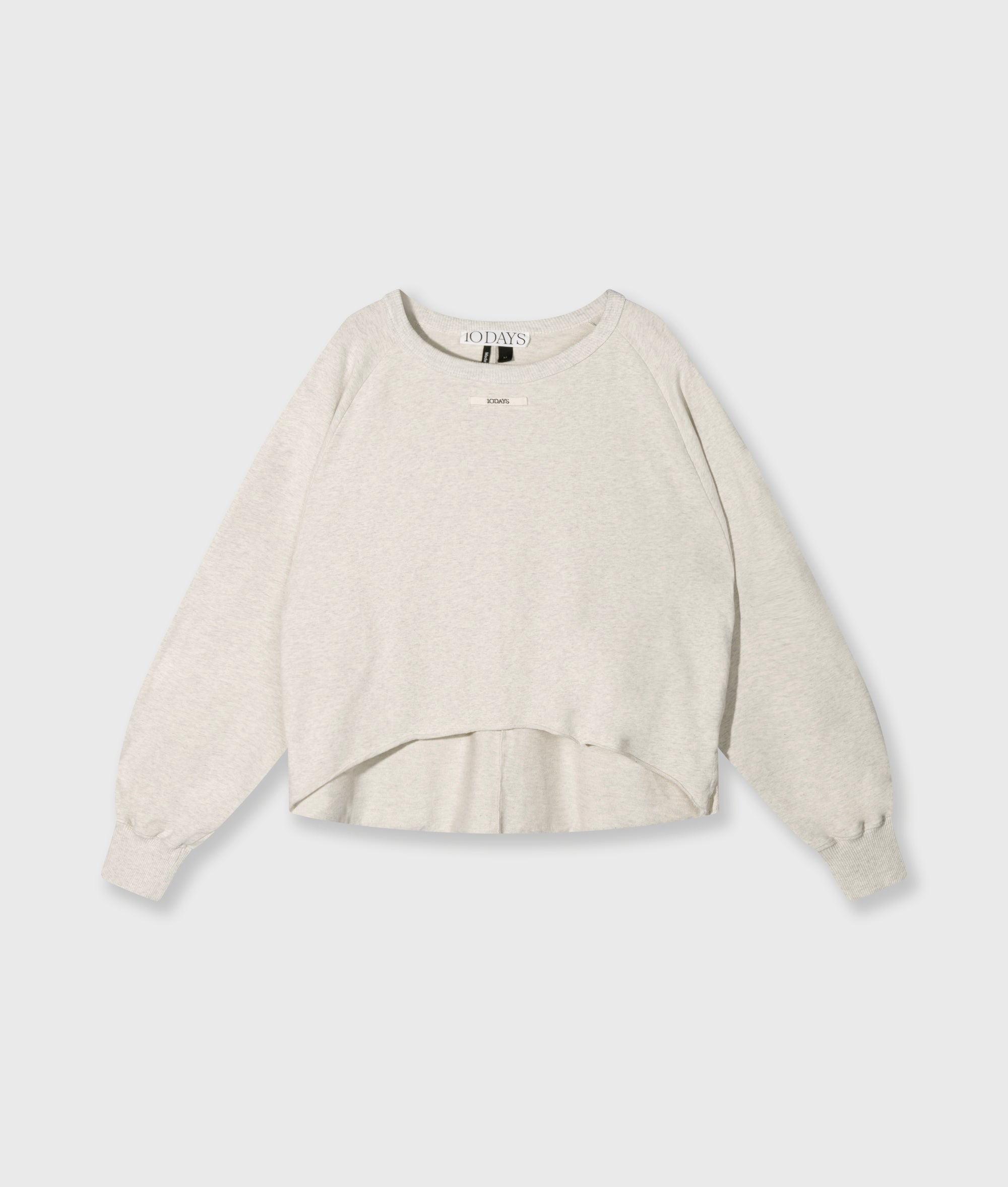 Relaxed fit sweater made from GOTS-certified organic cotton. Designed with raglan sleeves, a raw edge hem, monogram embroidery on the sleeve, a 10DAYS label on the chest and piping in the side seams.