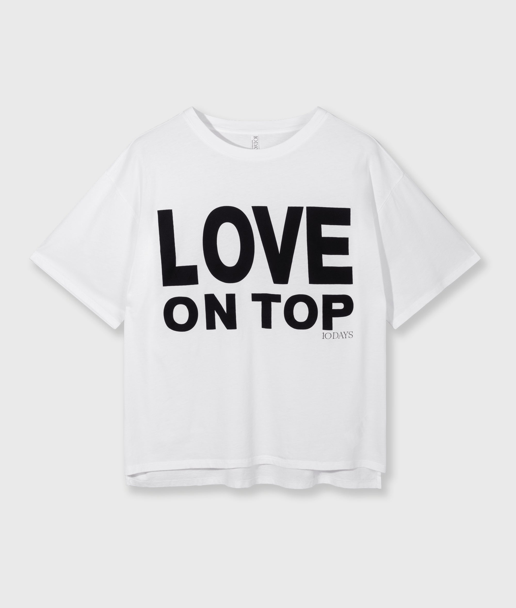 Oversized fit T-shirt, made from GOTS-certified organic cotton. Designed with a round ribbed neckline, a ‘love on top bold’ waterprint on the front and a label at the lower left on the back.