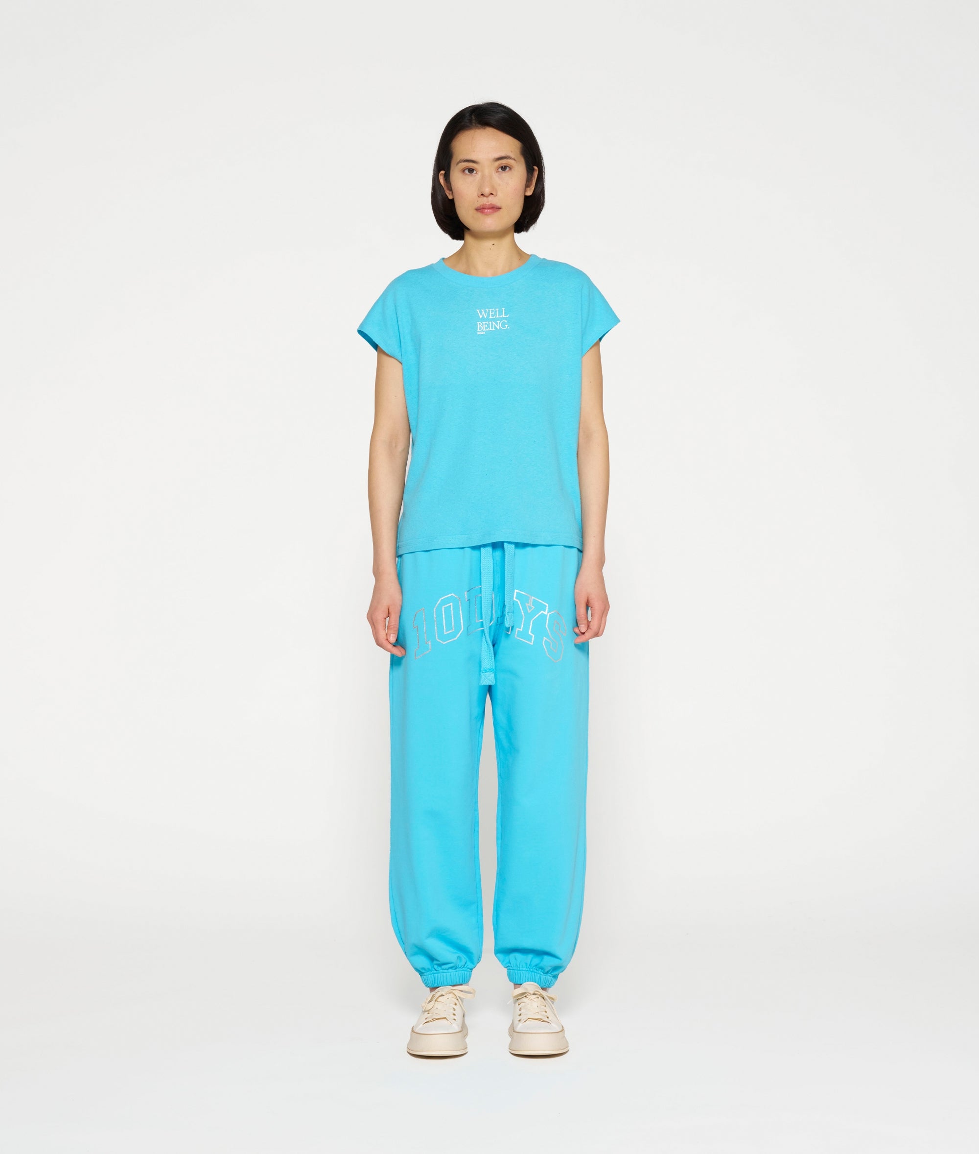 Relaxed fit T-shirt with short sleeves, made from signature 10DAYS linen jersey. Features a rib knitted neck, a 'WELL BEING 10DAYS' water print on the chest and a '10' embroidery on the back, just below the neckline.