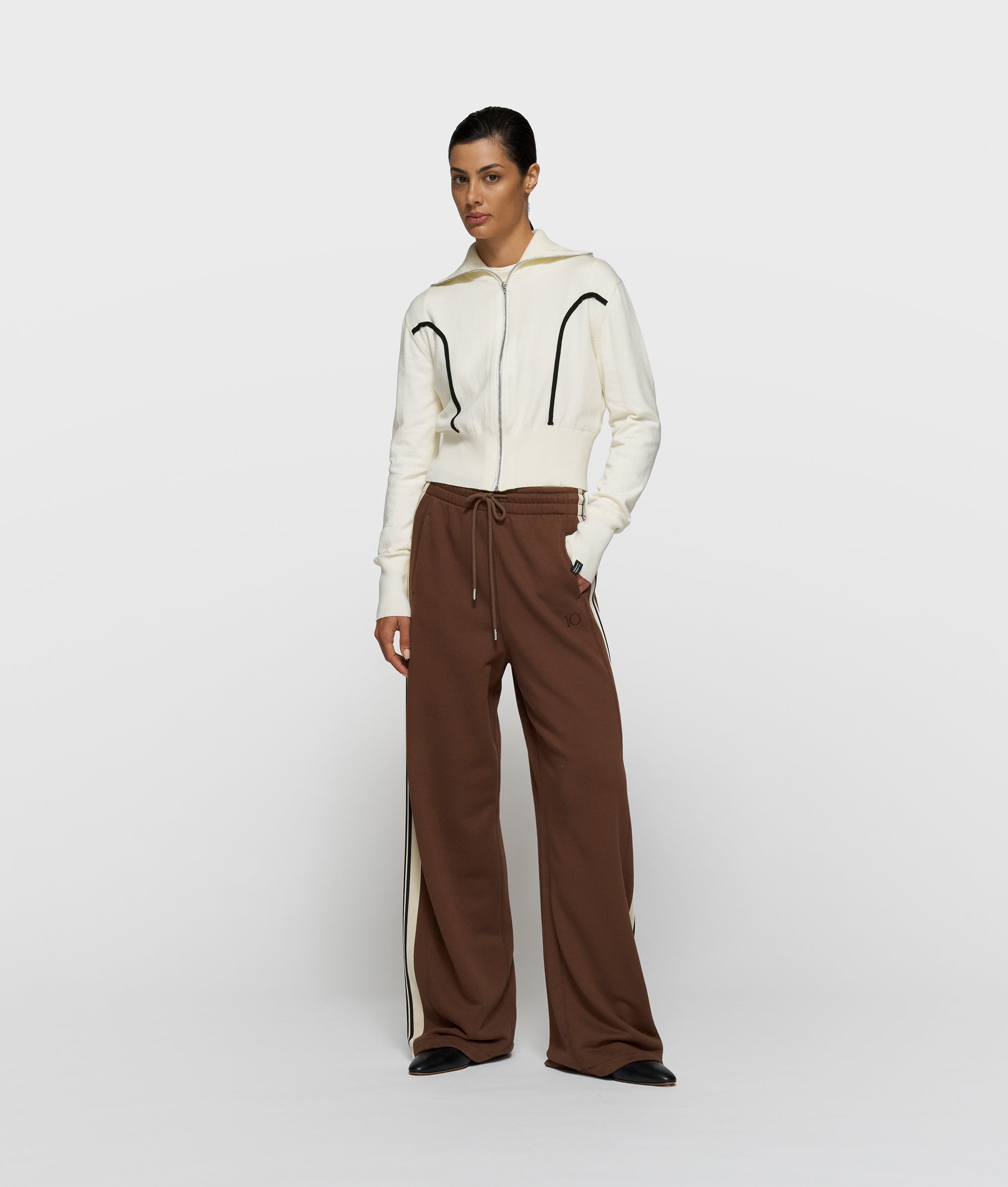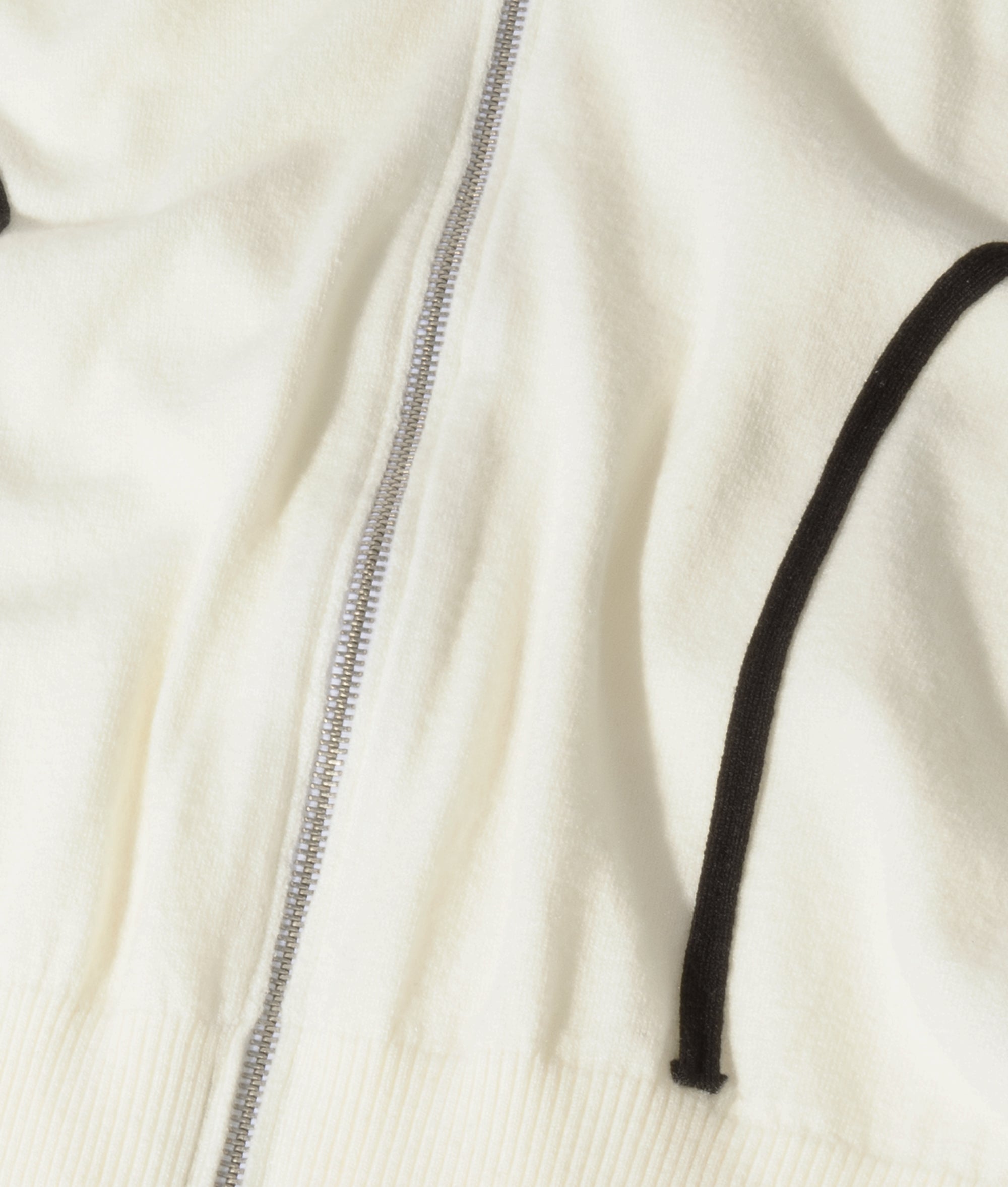 Slim fit cardigan, made from soft tech knit. Features a two-way zipper, ribbed trims, knitted tape details on the front, a tagline label on the left sleeve, and a transparent '10DAYS' patch on the back.