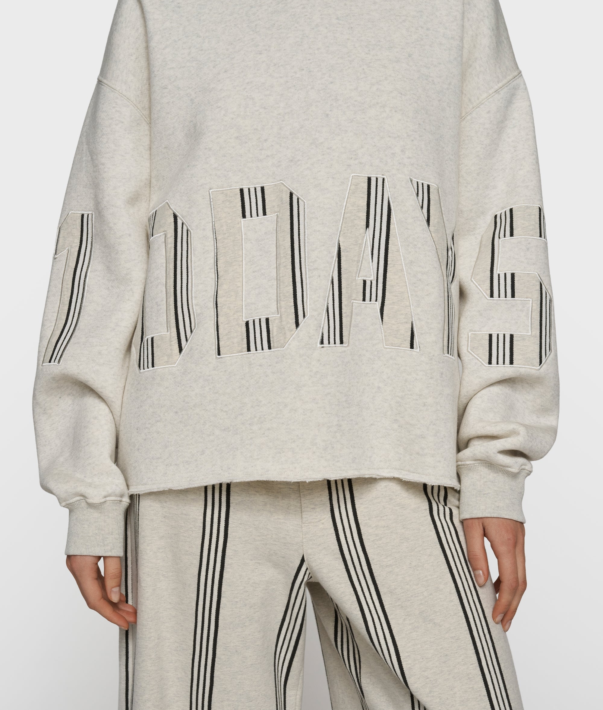 Oversized fit statement hoodie, made from a cotton and polyester blend. Designed with a large striped ‘10DAYS’ logo patch on the sleeves and body at the front, a hood, rib-knitted cuffs and a raw-edge hem.