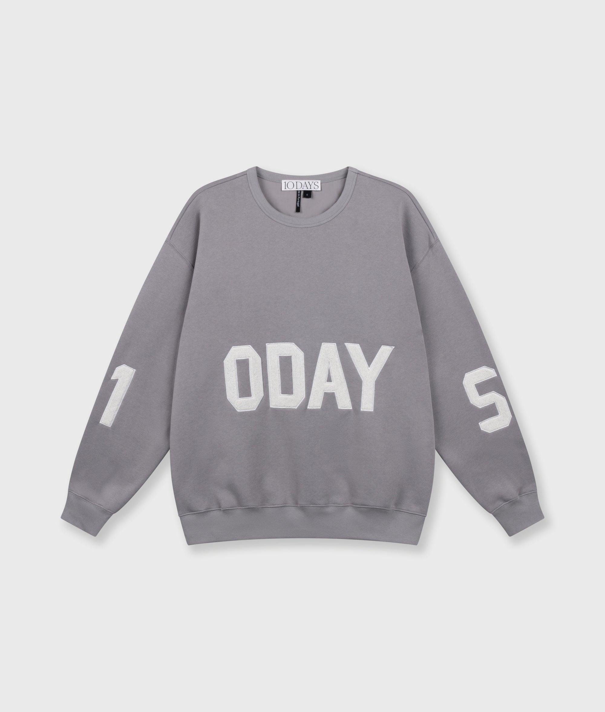 Oversized fit statement sweater, made from heavy brushed fleece. Features a large terry 10DAYS logo patch on the sleeves and front, a ribbed crewneck, and ribbed cuffs and hem.