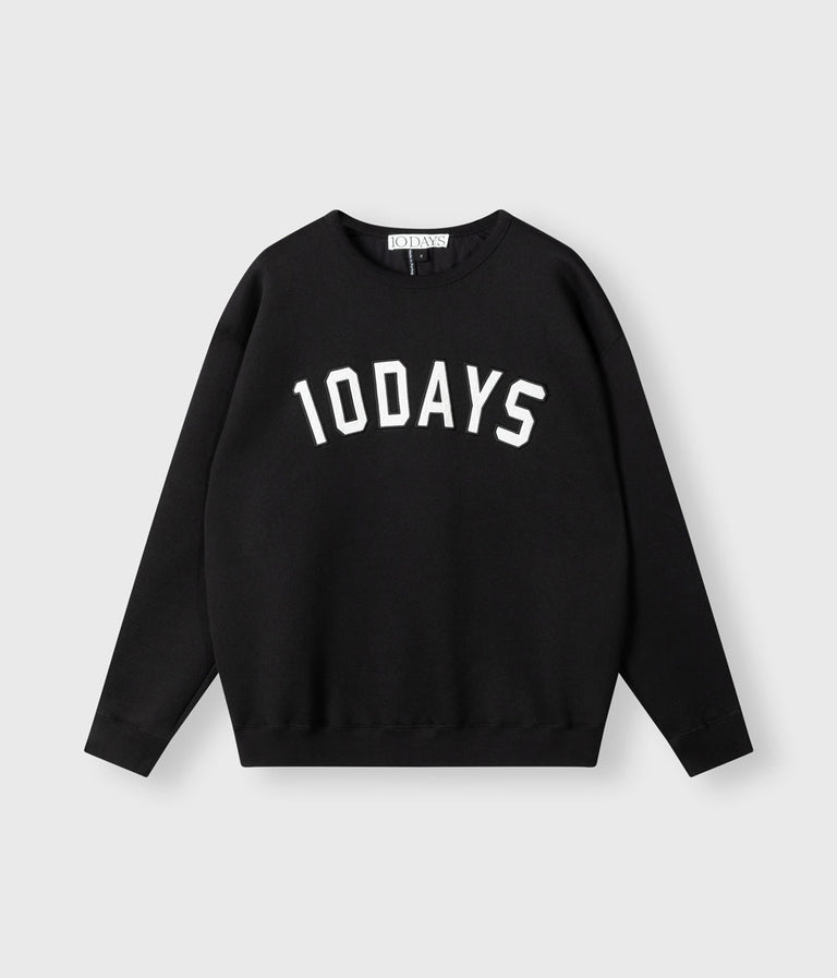 Oversized fit statement sweater, made of thick brushed cotton and polyester blend. Features a felt baseball 10DAYS logo patch on the chest, a round rib knitted neck and rib knitted edges at the cuffs and hem.