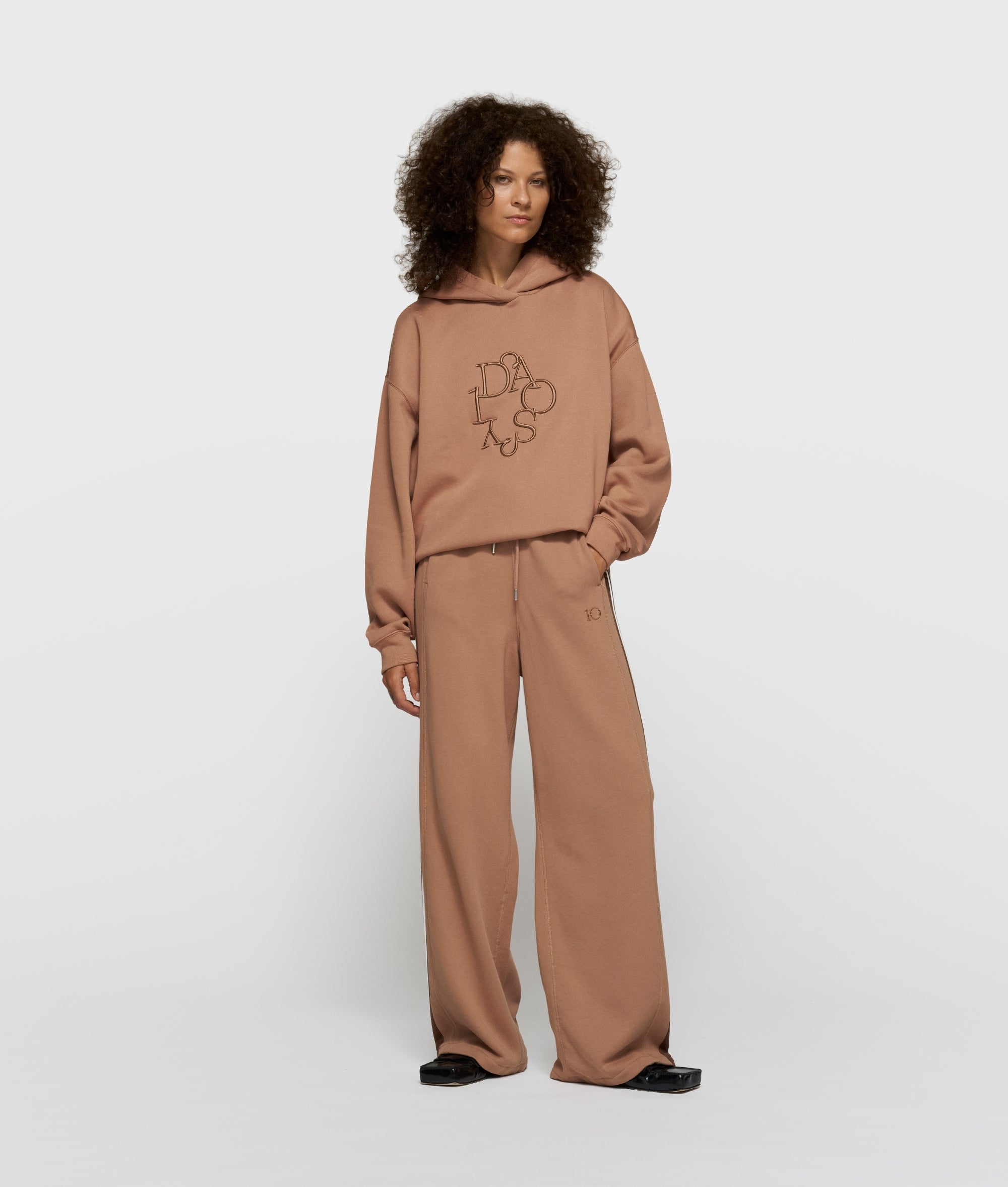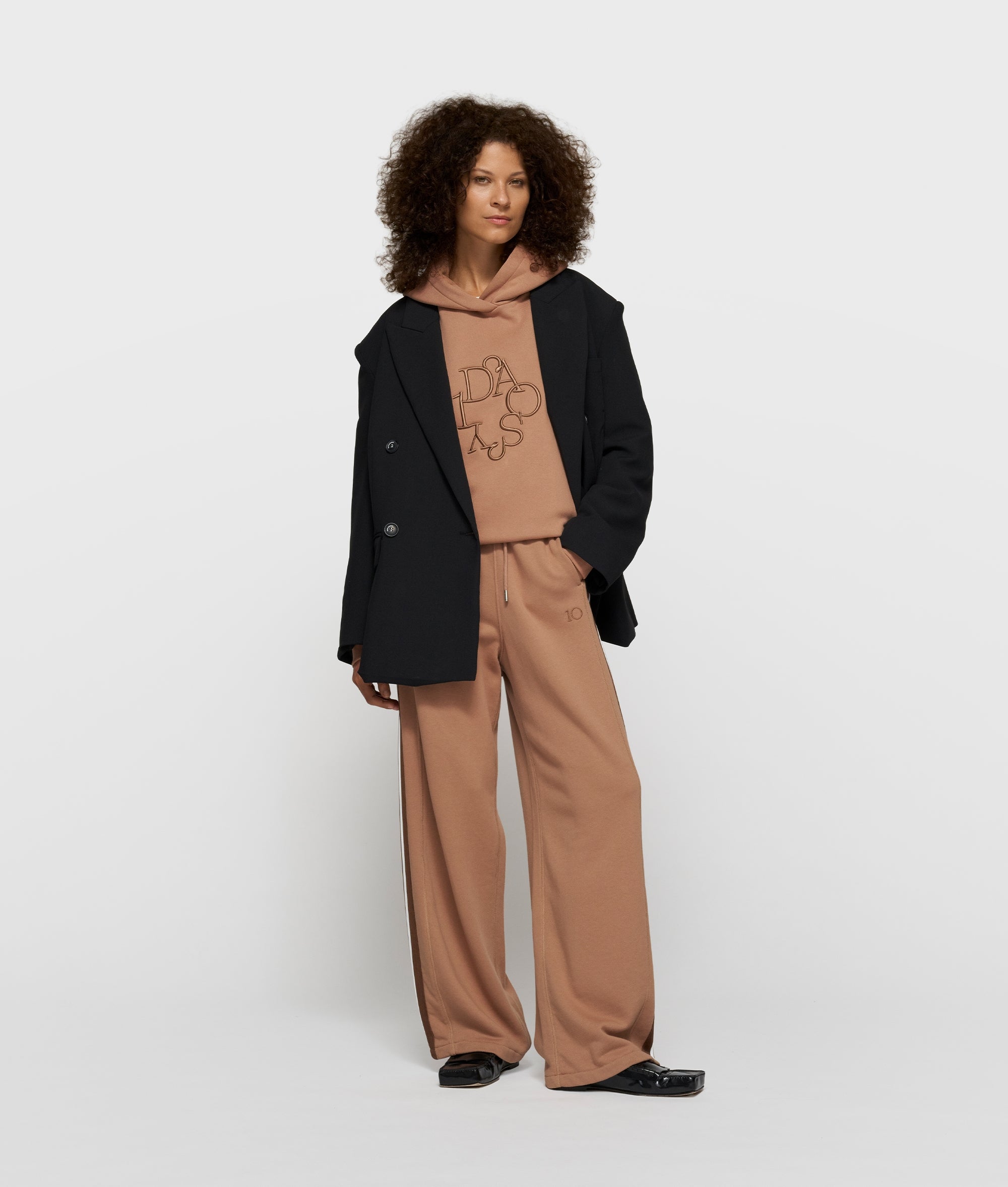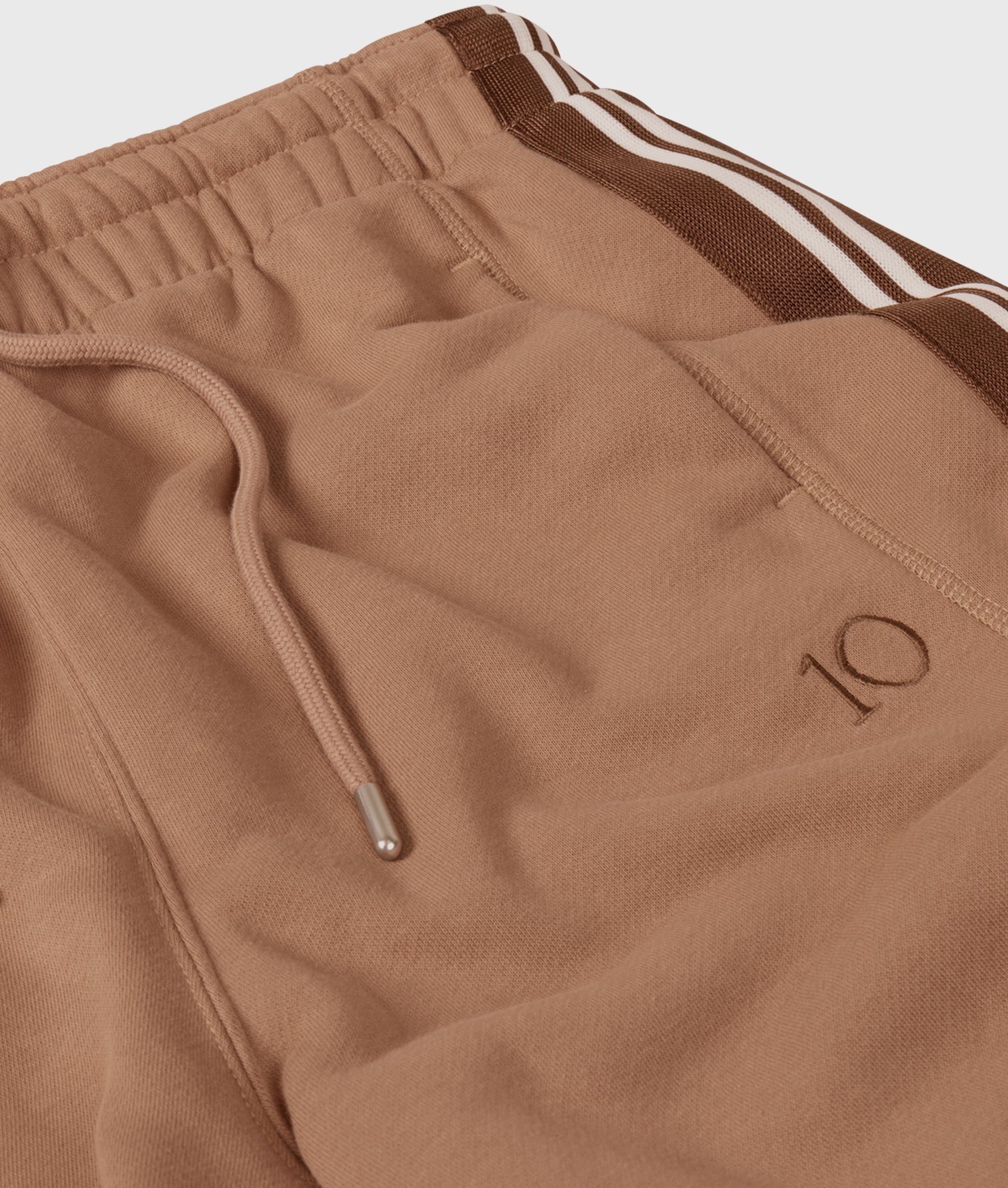 Relaxed fit western jogger, made from soft cotton and polyester blend. Features an elastic waistband with drawstring, side pockets, tape details along the side seams, a '10' monogram below the left pocket, and a patch pocket at the back.